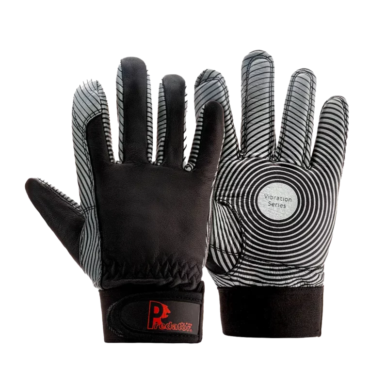 The Pred Anti-Vibe is a premium safety glove crafted from high-quality black goatskin leather. Engineered with a specialized anti-vibration liner and a comfortable knitted fleece interior, it is designed to protect workers from the harmful effects of Hand-Arm Vibration Syndrome (HAVS) during the operation of heavy machinery.