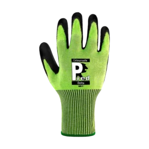 The Pred Delta is a high-performance safety glove designed for tasks requiring superior cut resistance without sacrificing dexterity. It features a lightweight 13-gauge green UHMWPE and Spandex liner, palm-coated with high-quality polyurethane (PU). This combination provides excellent tactile sensitivity and Cut Level D protection, making it ideal for precision handling in various industrial sectors.