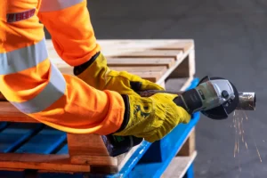 The Pred4 is a premium, heavy-duty glove crafted from top-quality gold split leather, featuring a reinforced double palm and thumb for maximum protection and durability in high-heat environments.