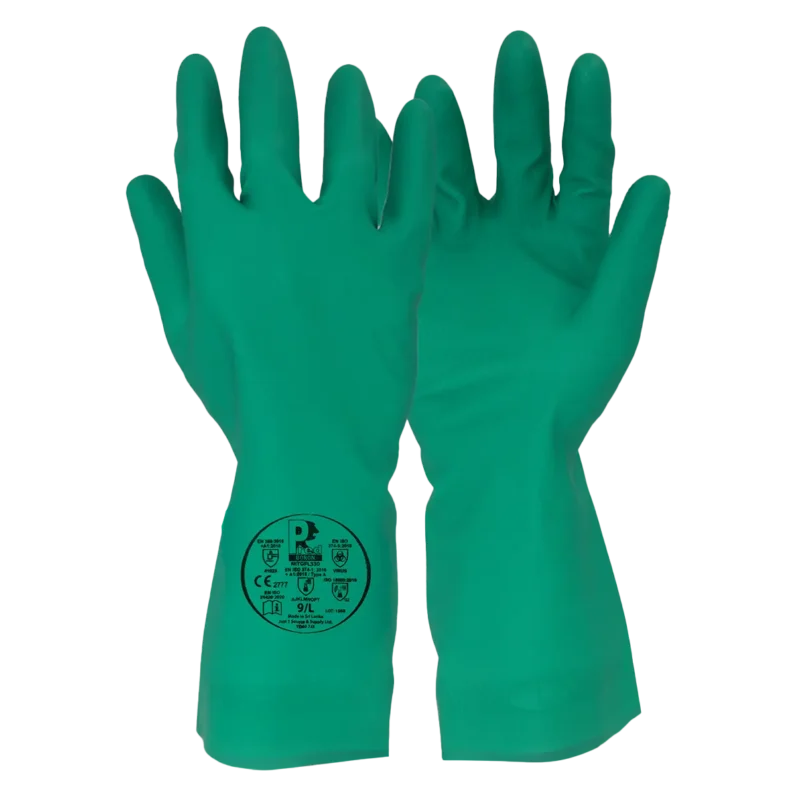 The Pred Boron is a heavy-duty 15 mil nitrile flocklined gauntlet designed for superior chemical resistance and durability. At 330mm in length, it provides extended protection for the forearm, making it an essential tool for high-risk chemical handling and agricultural pesticide applications.