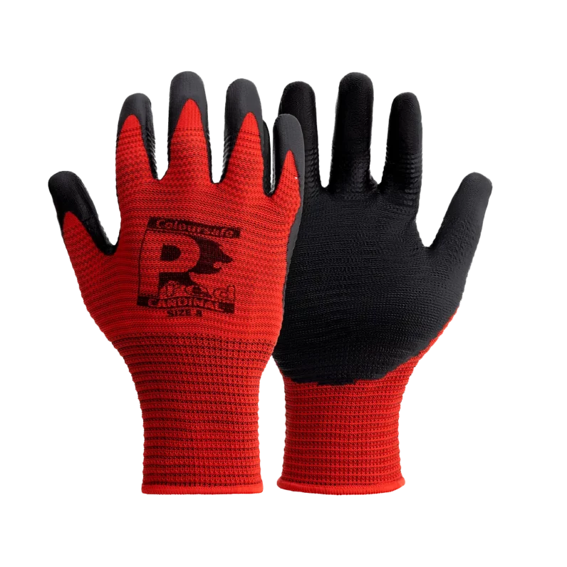 The Pred Cardinal is a premium safety glove designed for superior grip and durability in demanding environments. It features a unique 13-gauge red ribbed polyester liner that enhances tactile feel and grip, combined with a high-quality nitrile foam palm coating. This combination offers excellent resistance to oils and grease while providing Contact Heat Level 1 protection (EN407:2020), making it an ideal choice for automotive, engineering, and general handling applications.