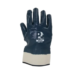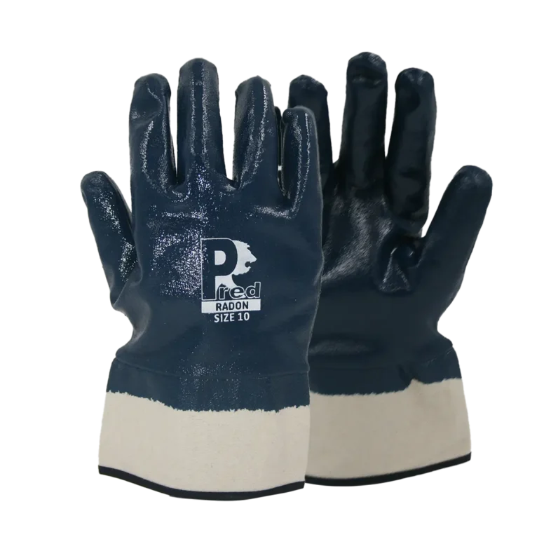 The Pred Radon is a robust safety glove designed for heavy-duty manual handling and industrial tasks. Fully coated in high-quality blue nitrile with a comfortable jersey liner and a specialized safety cuff, it provides excellent resistance against abrasions, oils, and greases while ensuring the user’s wrist remains protected.